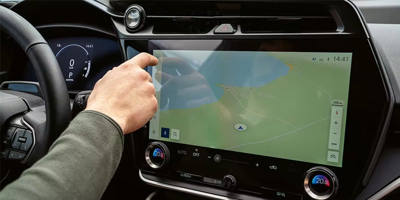 A 14-inch touchscreen dominates the dashboard, paired with a digital gauge cluster in all models. Higher trims project driving data onto the windshield with a head-up display, and wireless Apple CarPlay and Android Auto come standard.